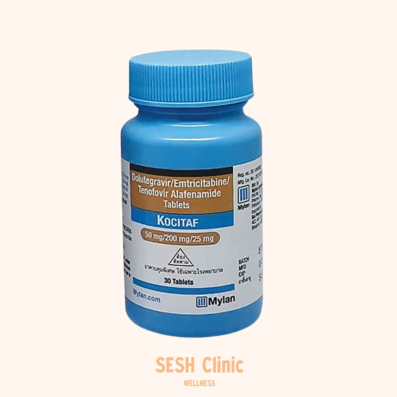 A healthcare professional wearing blue gloves holding a swab and sample tube, preparing for an STI test — SESH Clinic banner titled “When Is the Right Time to Get an STI Test?